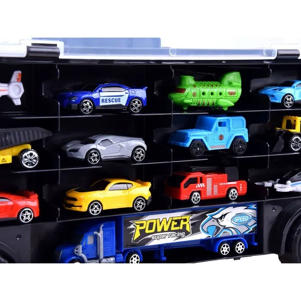 • Autószállító kamion 210 cm dupla versenypályával, 8 autó, 3+