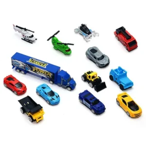 A 57 cm-es autószállító rendezett rekeszekben őrzi a 10 mellékelt járművet, így a gyerekek könnyen hordozhatják kedvenceiket. A mozgatható alkatrészek és változatos járművek fejlesztik a finommotorikát és a képzelőerőt.