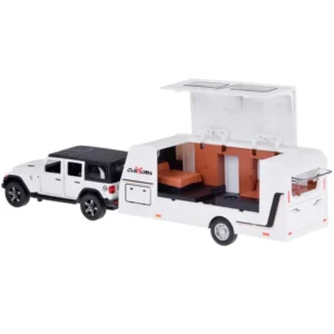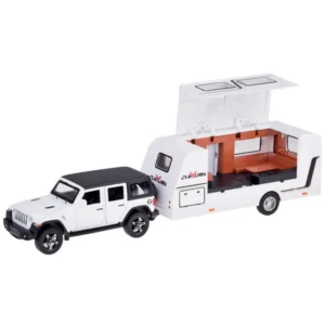 Off-road autó + kemping utánfutó a tökéletes játék, amely elrepíti gyermekét a nyaralási kalandok világába! A fém, terepjáró autó rendkívüli részletességgel készült, és a vezetés közben világító fényszórók valósághű megjelenést kölcsönöznek neki. Az 1:32 méretarányú modell tökéletesen reprodukálja a népszerű SUV-t, ötvözve a tartósságot és a magas minőségű műanyagot.