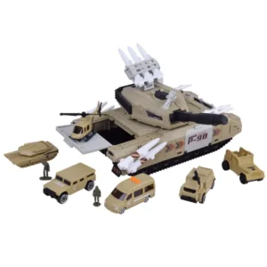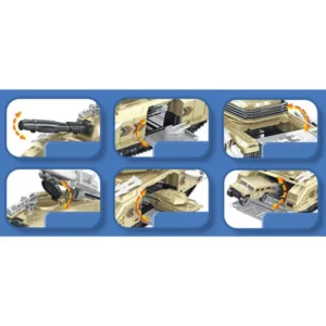 Az egész készlet műanyagból készült. A tank négy zárható rekesszel rendelkezik járművek, katonák vagy fegyverek számára, az ágyú 360 fokban forgatható.