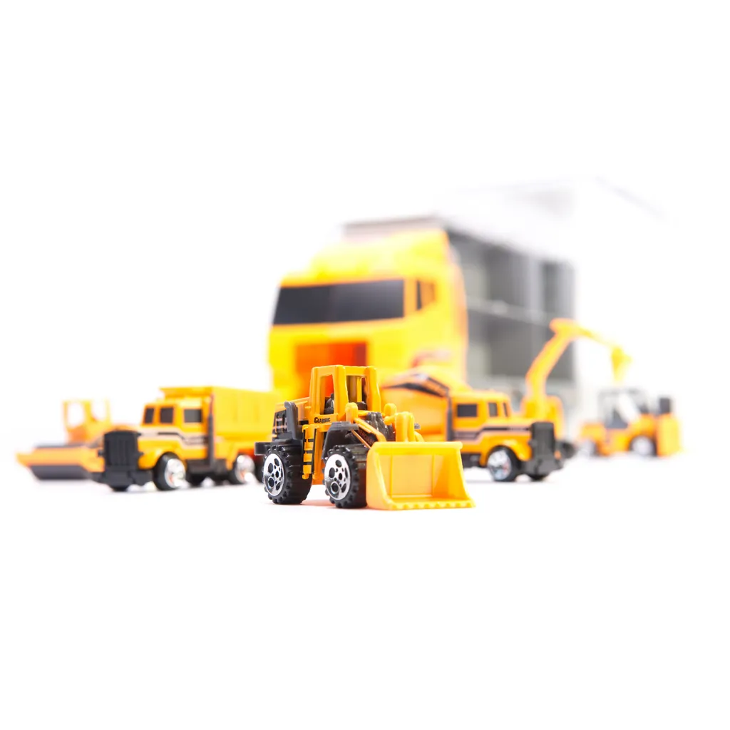A kis fémautók a valódi építőipari gépek tökéletes másai.