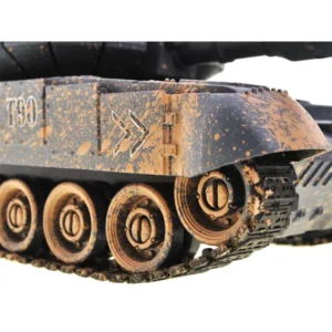 T90 tank grafitból készült álcázással és sárhatásokkal, nagyszerű élményt nyújt.