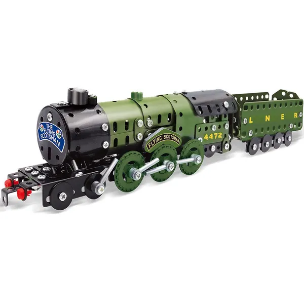 Szereld meg saját Flying Scotsman gőzmozdonyodat és kocsiját ezzel a 340 részes fém építőkészlettel, amelyben minden szükséges alkatrészt és szerszámot megtalálsz.