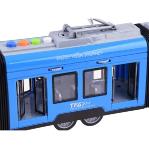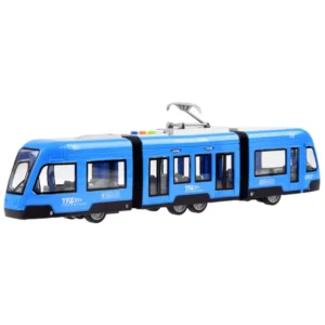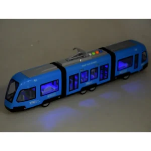 A villamos egy játék hang- és fényhatásokkal. A jármű, ahogy illik, nyitható ajtókkal és valósághű hangokkal rendelkezik. A kék csuklós villamossal való játék nagyon élethű és szórakoztató lesz. A villamos kék-szürke műanyagból készült. A járművet a kerekek rugós feszítése hajtja.