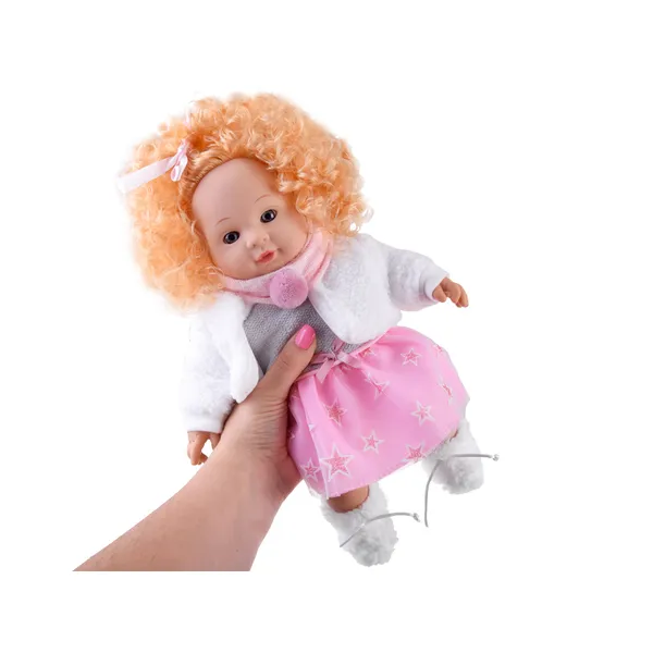 Interaktív 32 cm-es baba szőke göndör hajjal és ötféle hanggal