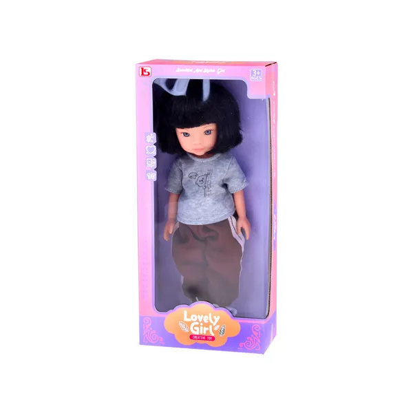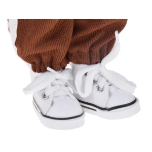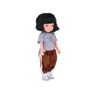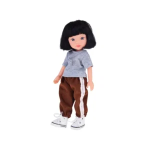Ez a bájos, rövid fekete hajú baba sportos öltözékben érkezik, hogy minden nap játékra inspirálja a gyerekeket. A 33 cm-es figura szürke mintás pólót, barna fehér csíkos melegítőnadrágot és fűzős fehér tornacipőt visel – tökéletes választás a mindennapi kalandokhoz.