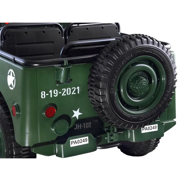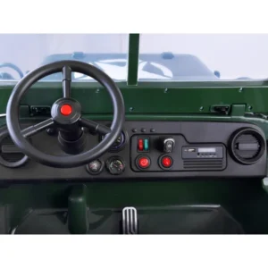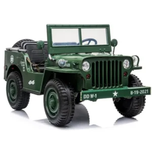 Katona-zöld, masszív, háromszemélyes elektromos terepjáró, amely valódi off-road élményt nyújt a gyerekeknek. A 12 V 14 Ah zselés akkumulátor és a négy, egyenként 45 W-os motor 4×4 meghajtást biztosít, de egy gombnyomással kétkerék-üzemmódra váltható az energiatakarékosság érdekében. A csomag szülői 2,4 GHz-es távirányítót is tartalmaz, így a legkisebbek is biztonságosan élvezhetik a kalandot.