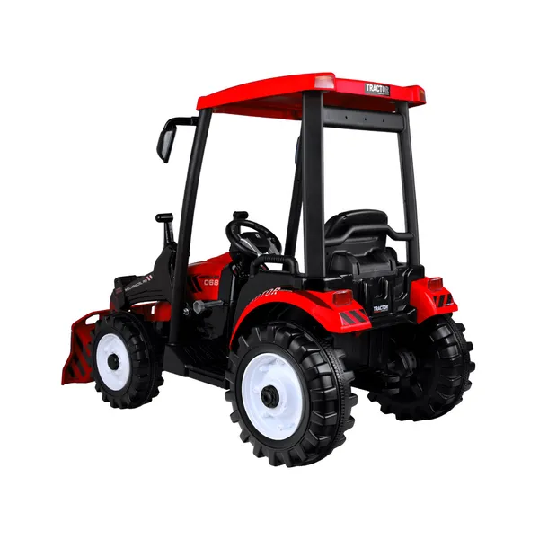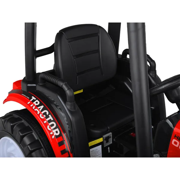 A robusztus műanyag karosszéria, a tetős vezetőfülke és a nagy, futófelület-mintás kerekek gondoskodnak arról, hogy aszfalton, térkövön vagy fűben is magabiztosan guruljon. A formázott ülés csípőövvel, a pedálos gáz és az automatikus elektromos fék biztonságos vezetési élményt kínál.