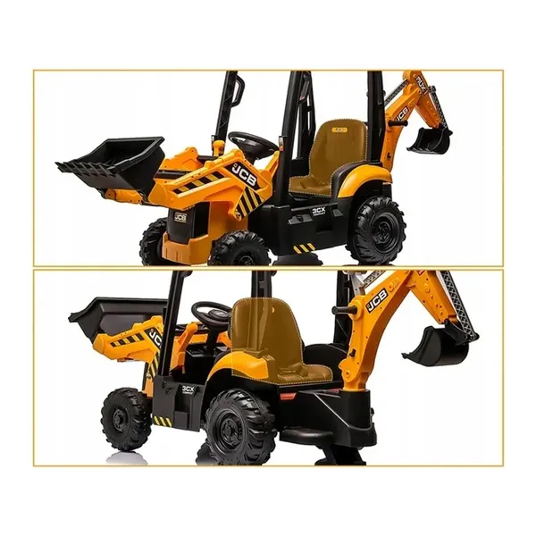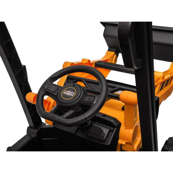 • Meghajtás: A jármű 2 x motorral (2 x 12V 25W) + akkumulátorral (1 x 12V/4.5Ah) + 2.4 GHz-es szülői távirányítóval van felszerelve. A gyermek önállóan mozgathatja a kotrógépet a gázpedál lenyomásával a kotrógép kabinjában és a kormánykerék kürtjének használatával.