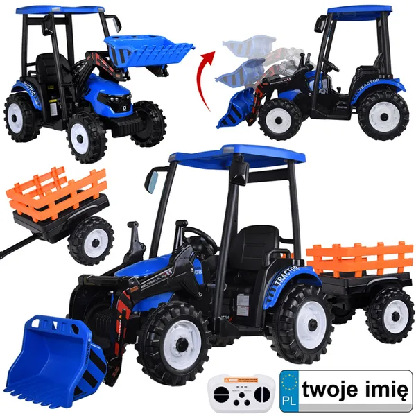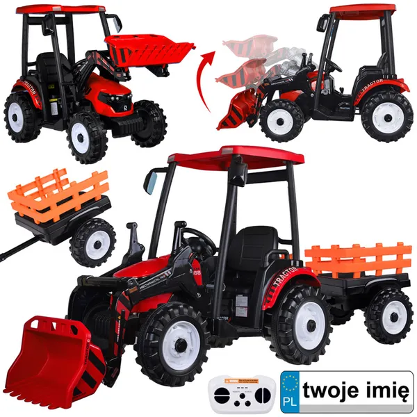 • Gyerek 24V elektromos traktor markolókanállal és utánfutóval, távirányítós