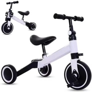 • A hátsó kerekek és a pedálok összecsukhatók és kinyithatók, így a bicikli könnyen átalakítható járgánnyá.