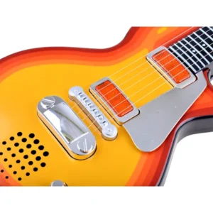 A készlet teljesen műanyagból készült, fém húrokkal. A rock színek illenek a kis gitáros által játszott erős hangokhoz.