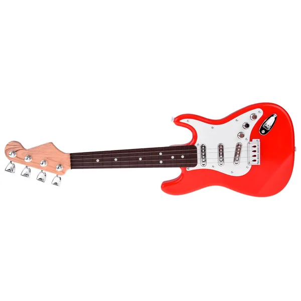 A 44 cm-es elektromos játék gitár ideális társ minden kis zenésznek, aki szívesen merülne el a rock hangzás világában. A négy aktív fémhúr érintésre hangot ad, a három különböző hangmintát tartalmazó gomb pedig további ritmusokat varázsol elő. A könnyű műanyag testet állítható vállpánt teszi kényelmessé, így a gyerekek szabadon mozoghatnak játék közben. A gitár 3 × AA elemmel működik, ezért a buli bármikor, bárhol elkezdődhet.