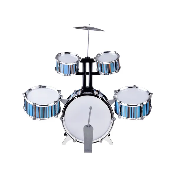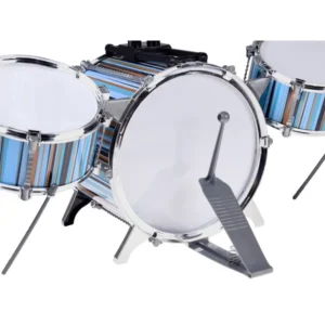 Indítsd el a zenei kalandot! A kék színű gyermek dobfelszerelés öt dobbal, egy cintányérral és kényelmes ülőkével ideális az első ritmusok elsajátításához, miközben játékosan fejleszti a mozgáskoordinációt és a kreativitást.