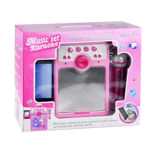 Rózsaszín gyermek karaoke Bluetooth boombox hangszóró mikrofonnal