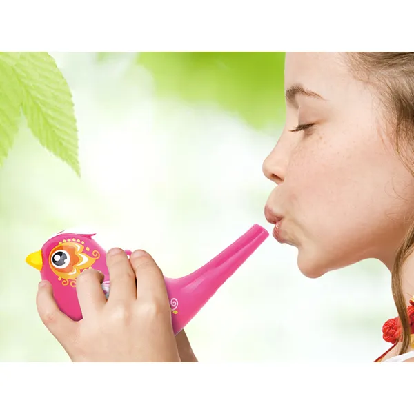 Vidám, színes síp, amely vízzel megtöltve varázslatos madárcsicsergést produkál, üresen pedig erőteljesen szól. Kis méretének és tartós műanyagának köszönhetően útközben, buliban vagy a kertben is remek szórakozást nyújt gyereknek és felnőttnek egyaránt.