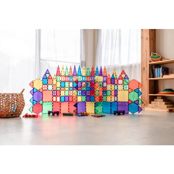 Ez a 212 darabos Connetix mágneses építőkészlet óriási szórakozást kínál gyermekeknek és felnőtteknek egyaránt! Fedezze fel a végtelen kreatív lehetőségeket, építsen mesebeli kastélyokat, magas tornyokat, vagy bármit, amit csak el tud képzelni. A darabok könnyen összeilleszthetők, és az erős mágneseknek köszönhetően stabilan tartanak.