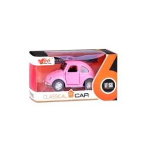 Rózsaszín fém játékautó nyitható ajtókkal és fénnyel