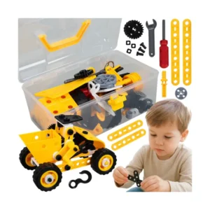 Akár versenyautót, markolót vagy fantáziajárművet álmodik meg a gyerek, a 100 darabos 3D építőjáték segítségével könnyedén meg is valósíthatja. A színes műanyag elemekhez csavarok, kerekek, fogaskerekek és saját szerszámok tartoznak, így a kicsik valódi szerelőnek érezhetik magukat, miközben finommotorikus készségük, térlátásuk és logikus gondolkodásuk fejlődik.