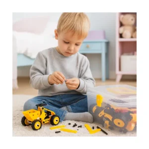 Csavarozható 3D építőjáték, amellyel a gyerekek saját járműveket rakhatnak össze, miközben fejlődik a finommotorika és a problémamegoldás. A stabil tárolódoboznak hála könnyű rendben tartani és utazásra vinni.