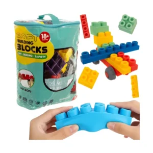 Színes, puha TPR gumiblokkokból álló, 80 darabos érzékszervi építőkészlet, amely biztonságosan fejleszti a kisgyermekek finommotorikáját és kreativitását. A lekerekített formák és különböző textúrák játékra ösztönöznek már 18 hónapos kortól.