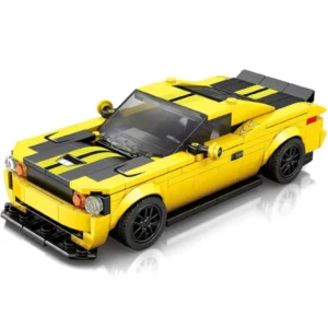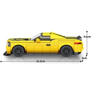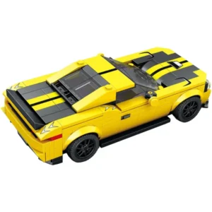 Technikai blokkok készlete sportos, sárga autó építéséhez ideális ajándék az autózás és a modellezés rajongóinak.