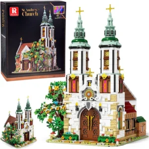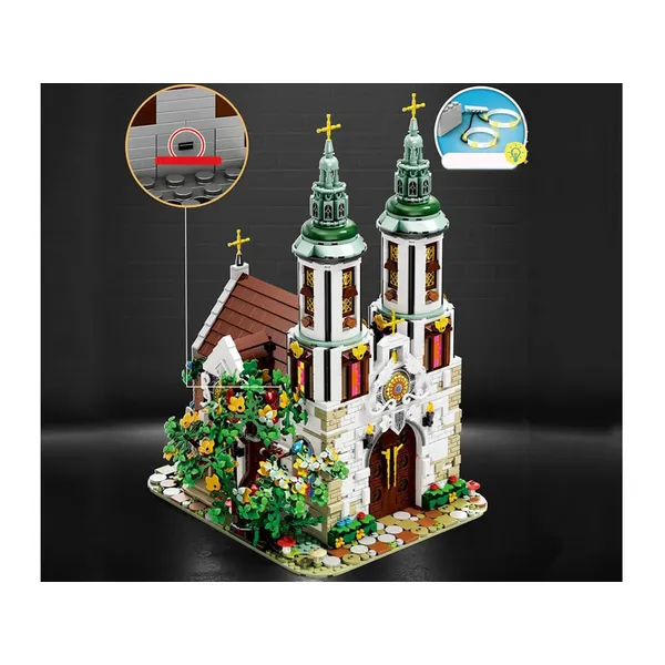 Világító Szent András-templom építőkocka készlet, 3087 elem, 14+