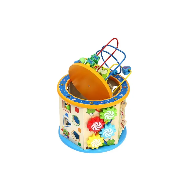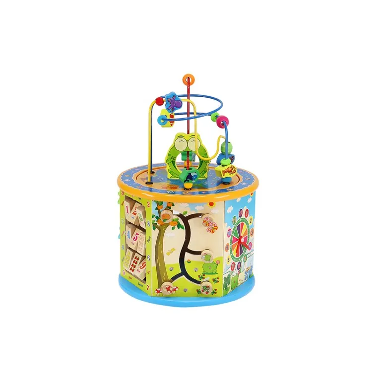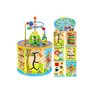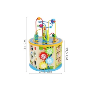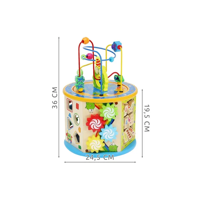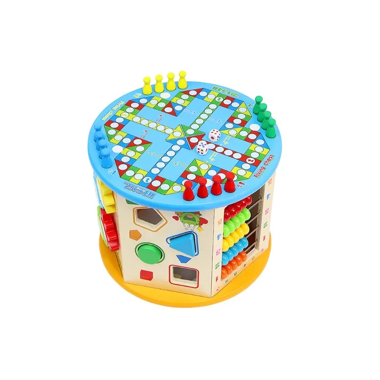 A Fa Oktató Kocka 8in1 hat funkciógazdag, színpompás oldalfallal rendelkezik, melyek izgalmas feladatokat kínálnak minden korosztály számára. A tetején egy vidám, színes kirakó található, míg az alján egy klasszikus Kínai Dáma játékot játszhatnak a gyerekek.