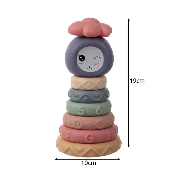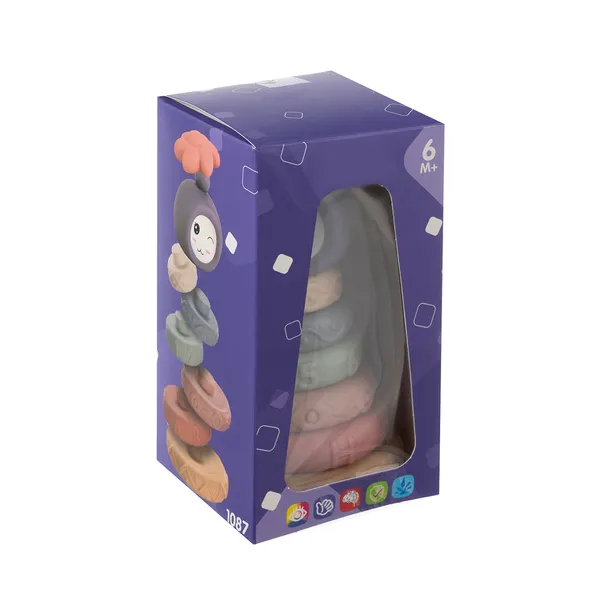 • Puha gumi gyűrűpiramis, betű- és számmintás, 9 darab, 6 hó+