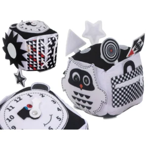 A fekete-fehér színek és a szokatlan forma a legjobb választás azon kisgyermekek számára, akiknek még nem teljesen fejlett a látásuk.
