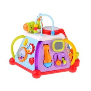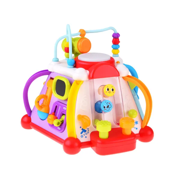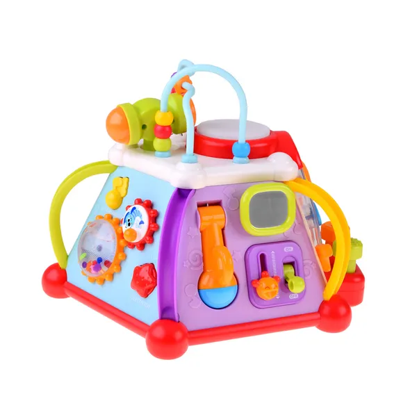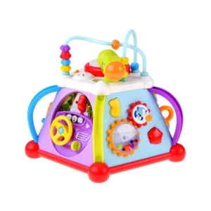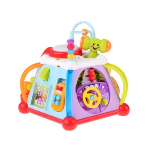 Az öt interaktív oldallal és felül elhelyezett gyöngylabirintussal ellátott oktatókocka változatos fény- és hanghatásokkal fejleszti a finommotorikát, a szem-kéz koordinációt és a hallást. Strapabíró kialakítása és kivehető kiegészítői hosszú időre lekötik a kicsiket, miközben szórakoztató tanulást biztosítanak.