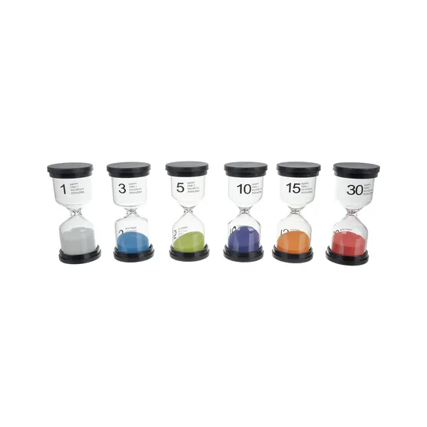A hatféle, színes homokórából álló készlettel játékosan gyakorolhatjátok a pontos időbeosztást: fordítsátok meg, és a homok 1-30 percig pereg. Elemmentes, hangtalan és tartós kialakításának köszönhetően otthonra, iskolába vagy társasjáték mellé is ideális.