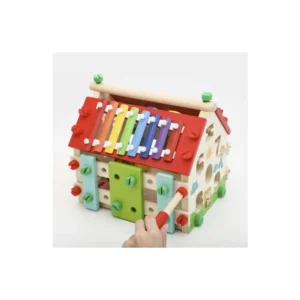 🎨 Egy olyan játékház, amely minden oldalán más-más kreatív játékot kínál. Van benne cintányér, 2 db formakereső és egy kalapács is! Ez nem csupán szórakoztató, hanem az érzékszervi integrációt és a képzelőerőt is fejleszti. 🎨