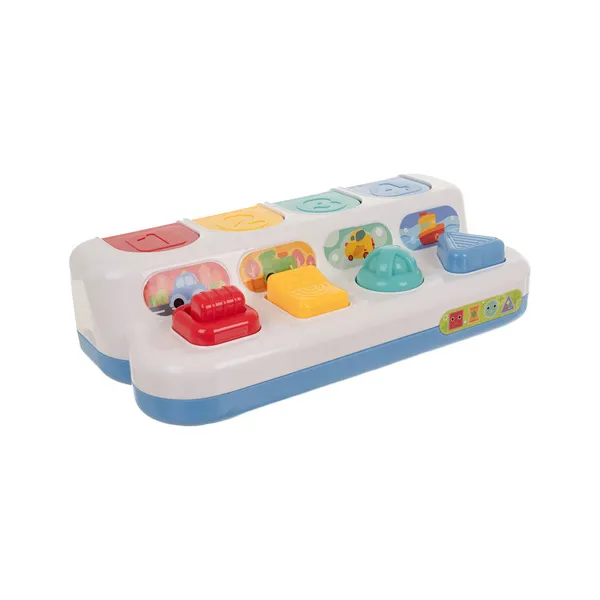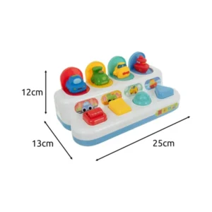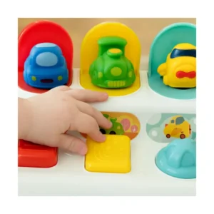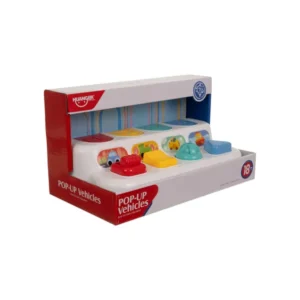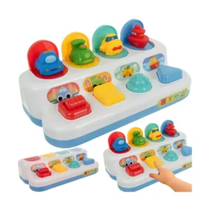 Nézd, ahogy a színes járművek egyetlen gombnyomásra előpattannak, miközben gyermeked játékosan gyakorolja a finommotorikát és a szem-kéz koordinációt. A kompakt, könnyen hordozható alap bármilyen asztalon vagy szőnyegen elfér, így a szórakoztató tanulás bárhová elkísérhet.