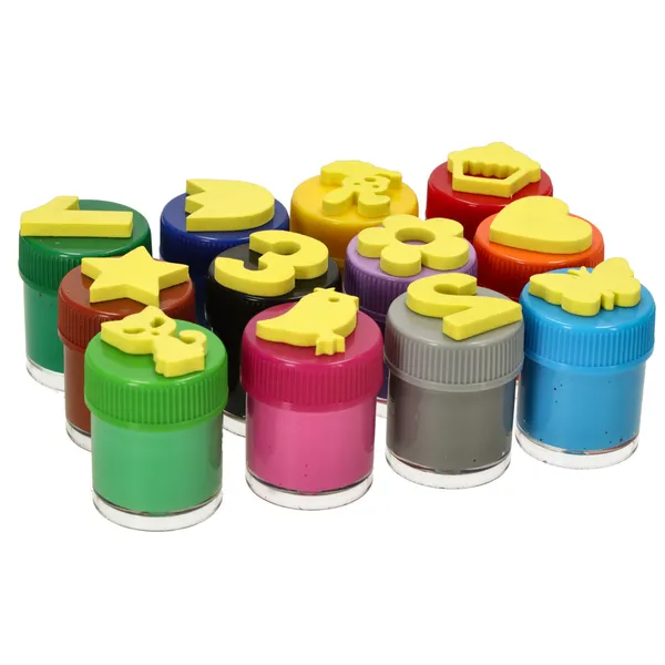Bambino ujjfesték készlet 12 élénk színnel, 15 ml-es bélyegzős tégelyek
