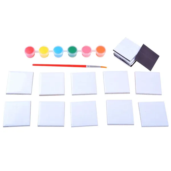 Kreatív hűtőmágnes festő készlet gyerekeknek – 10 kerámialap, 6 festék, ecset