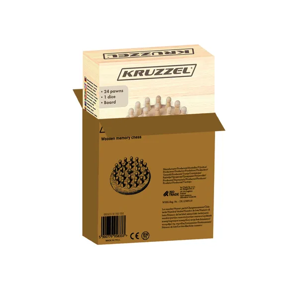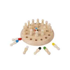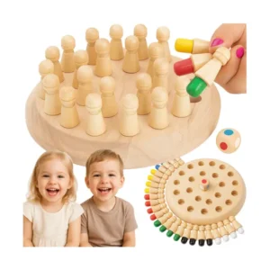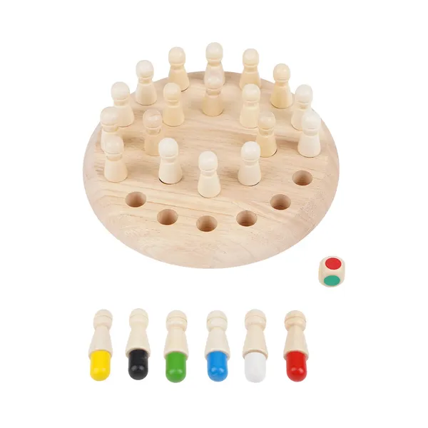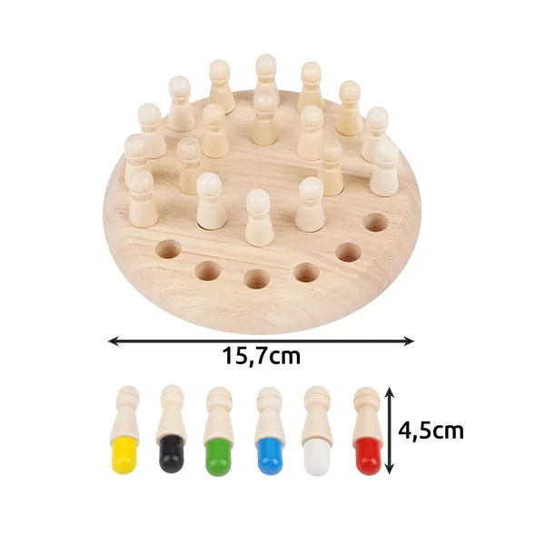A természetes fából készült memória-sakk játék fejleszti a koncentrációt, a logikus gondolkodást és a finommotorikát, miközben szórakoztató családi kihívást biztosít. Kompakt mérete, tartós kivitele, valamint a 24 színes bábu könnyen kezelhetősége miatt utazáshoz, otthoni játékhoz és fejlesztő foglalkozásokhoz is ideális.