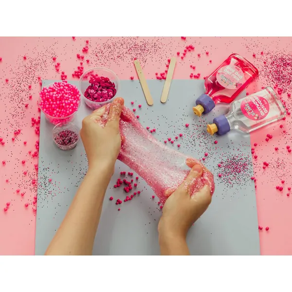A szett 500 ml rózsaszín, süti illatú PVA ragasztót, aktivátort és csillámot tartalmaz, mellyel látványos slime-ot varázsolhatsz percek alatt. Biztonságos, boraxmentes összetevői és a mellékelt tárolóedény gondoskodik a hosszan tartó, rendetlenkedés nélküli mókáról.