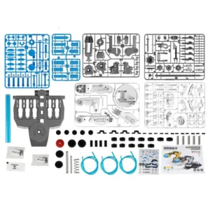 Építsd meg az ízületes robotkart a készlet összes elemének összeszerelésével. Ezután tölts vizet a hidraulikus rendszerbe, és irányítsd a „robotkéz” mozgását minden irányba a 6 kar segítségével! A kar akár 50 gramm súlyú tárgyakat is képes felemelni fogóval vagy tapadókoronggal. Működéséhez nincs szükség elemekre.