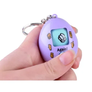 Színes, tojás alakú kulcstartó játékkal tökéletes választás iskolai hátizsákhoz vagy táskához. A kulcstartóba beépített népszerű „kő, papír, olló” játék található, csak meg kell nyomni egy gombot, és a forgó kar megmutatja a jelet. Remek kis kütyü, ami jól jön buszra várva vagy baráttal fogadást kötve.