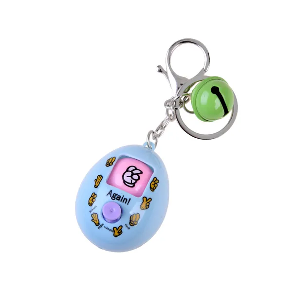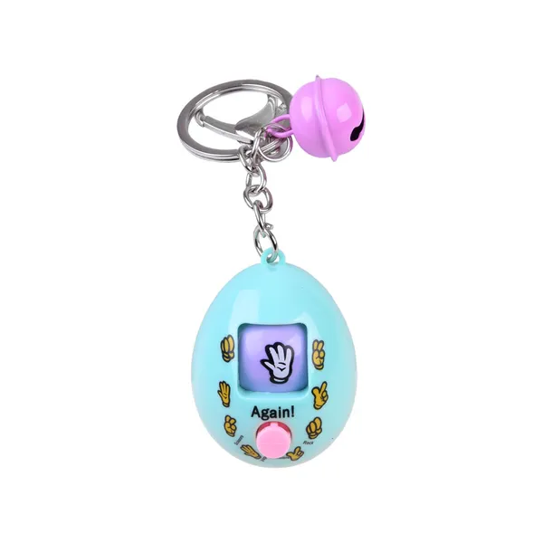 Tojás alakú, színes 6 cm kulcstartó beépített Kő-Papír-Olló játékkal