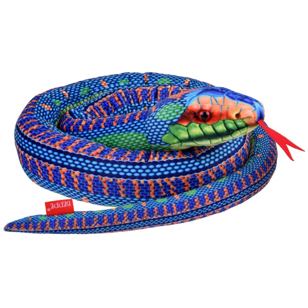 Realisztikus megjelenésű, 180 cm hosszú kék plüss kígyó a ZOO kollekcióból, amelyet a részletekre való odafigyelés és a prémium alapanyagok tesznek különlegessé. A puha, selymes tapintású anyag és a műanyag szemek életre keltik a hüllőt, így nemcsak játék, hanem dekoráció is lehet a gyerekszobában.