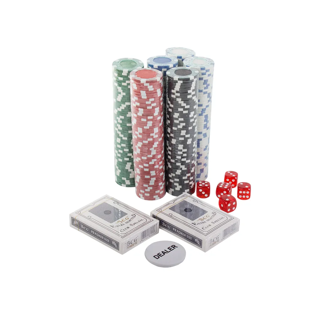Professzionális, masszívan elkészített póker vagy kocka készlet. Két csomag kártyával, egy kockakészlettel és 300 játékzsetonnal, elegáns tokba csomagolva. Tartalmazza a pókerjátékhoz szükséges összes elemet.