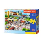 A 70 darabos midi puzzle élénk városi jelenete játékosan fejleszti a gyerekek koncentrációját, finommotorikáját és képzelőerejét, miközben tartós, vastag karton anyaga hosszan élvezhetővé teszi a kihívást.