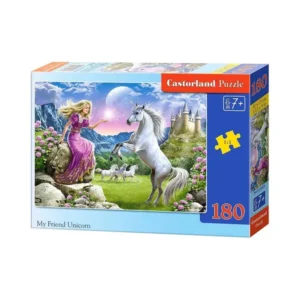 A 180 darabos, unikornisos midi puzzle izgalmas kihívást kínál a 6–8 éves gyerekeknek, miközben fejleszti a koncentrációt és a finommotorikus készségeket. A 32 × 23 cm-es, élénk színű kép gyors sikerélményt ad, utána akár keretbe tehető, vagy később újra kirakható a következő kalandhoz.