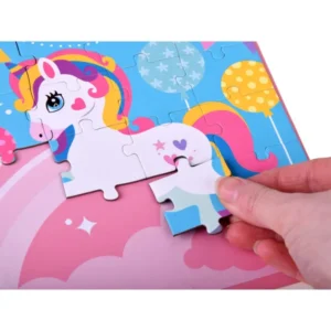 Minden tábla 20 elemből áll. Amikor a gyermek a mágneses felületen kirakózik, használhat egy példaképet az unikornisról. Mivel a készlet mágneses, könnyebb a kirakózás, az elemek nem esnek le, és egy váratlan mozdulattal sem lehet mindent elrontani, ami természetes a kisgyermekeknél. A kirakó fejleszti a gyermek megfigyelőképességét és kézügyességét. A készlet utazás közben is tökéletes, mivel a kirakók a helyükön maradnak.