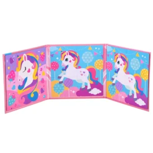 Színes mágneses kirakók egy kemény könyvbe zárva, amelyek minden gyermeknek sok kreatív szórakozást nyújtanak. A készlet két mágneses táblát tartalmaz, amelyek aranyos unikornisokat ábrázolnak. A gyermek feladata, hogy az elemeket egymáshoz illessze, hogy vidám unikornisokkal díszítse a táblákat.