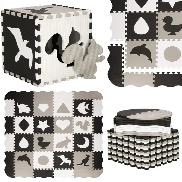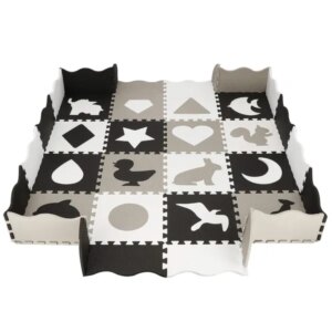 Gyerek hab puzzle szett 150×150 cm – fehér/szürke/fekete