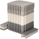 Legyen biztonságos és kreatív játszótér otthonában ezzel a nagyméretű EVA habpuzzle szőnyeggel! A három elegáns színben érkező, geometrikus háromszög mintás lapok puha, mégis tartós felületet adnak babáknak és kisgyermekeknek. A szett 72 darab puzzle-elemet és 24 szegélyt tartalmaz, így összerakva 186×186 cm-es játékteret kap, amely megóvja a kicsiket a hideg padlótól és ütődésektől.