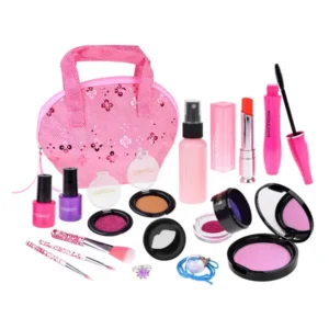 Ez a bájos sminkkészlet egy elegáns, csillogó kozmetikai táskában valószínűleg minden kislányt elbűvöl, aki szeret játszani a stílusokkal és a sminkkel. A kislányok gyakran szeretnek anyukájuk, nővérük vagy nagymamájuk kozmetikumait elcsenni. És anyának nem mindig tetszik, ha kedvenc rúzsa, szemhéjfestéke vagy szempillaspirálja egyetlen stílusalkotás során elfogy, vagy a falakon, bútorokon vagy a fehér kanapén köt ki :). Ezért ez a bájos készlet nagyszerű megoldás minden kislánynak, aki szeretné utánozni anyukáját, és saját kozmetikumaival gondoskodhat a stílusáról. Az egész készlet egy rózsaszín, flitterekkel díszített kozmetikai táskában van, így minden úgy van, ahogy lennie kell, azaz csillogó!